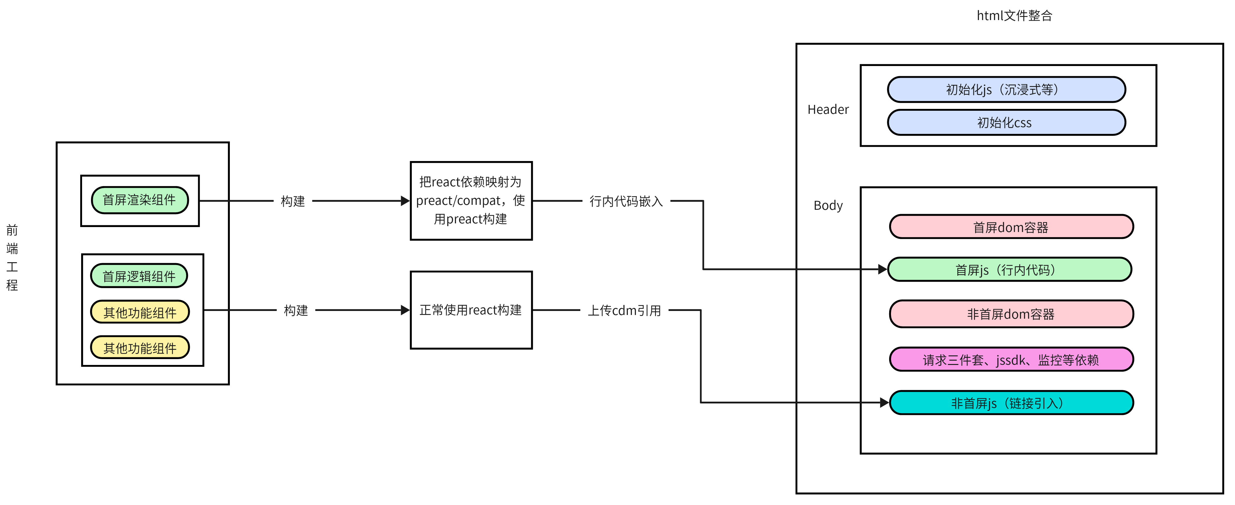 现有 H5 页面性能优化方案难以兼顾高性能、全渠道与低成本。针对 H5 页面数量增长、性能要求提升及开发资源有限的现状,提出了 pcsr 优化方案。该方案利用数据直出和前端工程化手段,分离出首屏渲染核心逻辑优先加载执行,实现页面秒开。